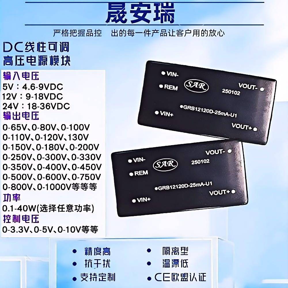 GRB系列20W微调高压电源24V转250V/600V/500V升压模块